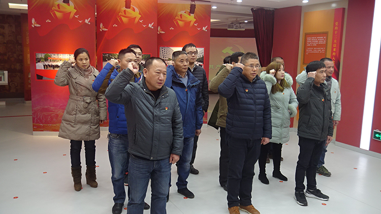 在講解員的引領下,我們一邊走,一邊看,用心聆聽,認真思考,在一幅一幅展板、一部部教育視頻前,通過文字、數據、畫面、聲音、影像、雕塑等,全體黨員對黨的組織架構、黨的紀律、黨員的權利和義務有了進一步的理解。最后,我們一行來到宣誓廳,面對黨旗,舉起右手,莊嚴宣誓,表達了為黨的事業奮斗終身的決心。