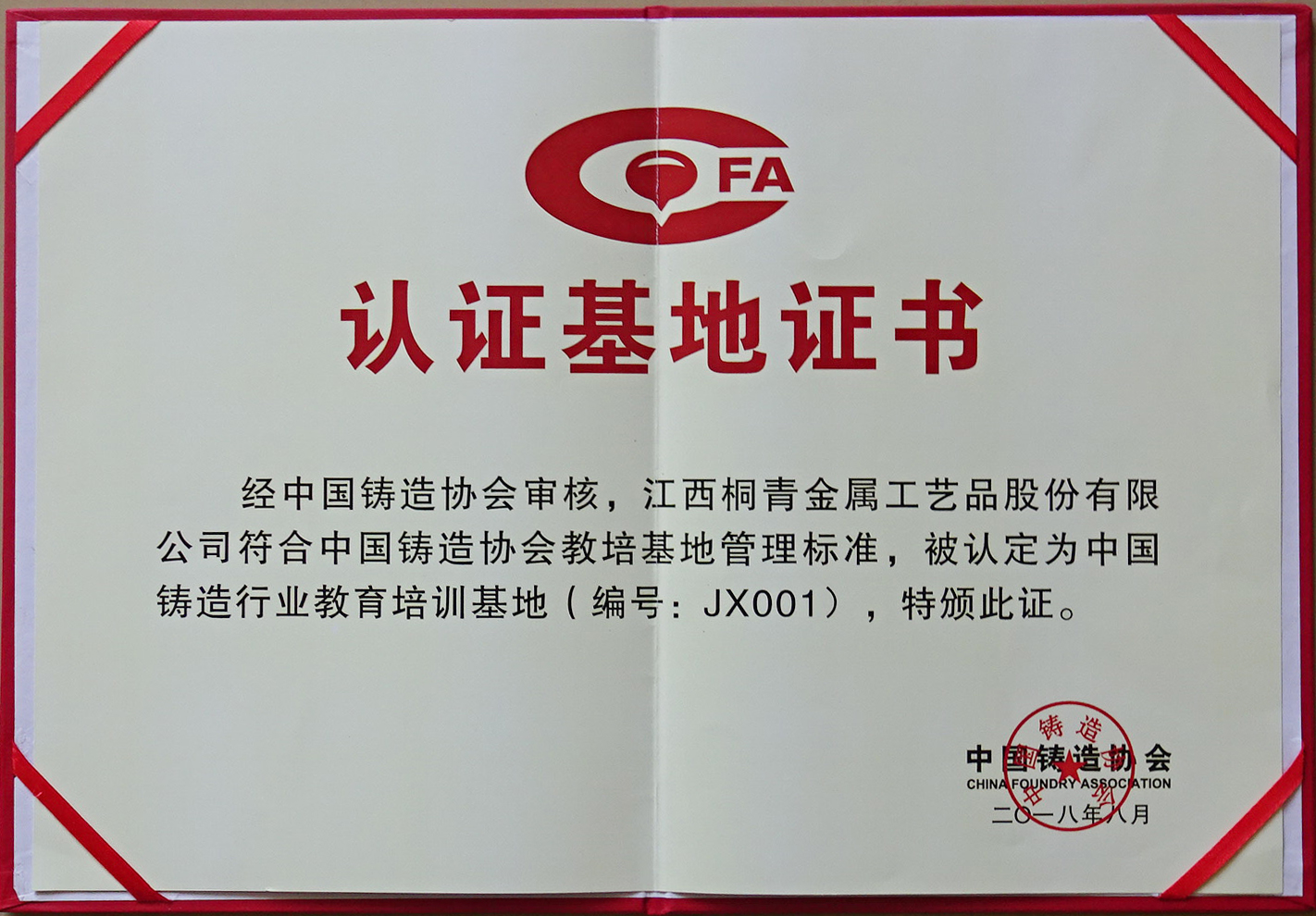 藝術鑄造認證基地證書