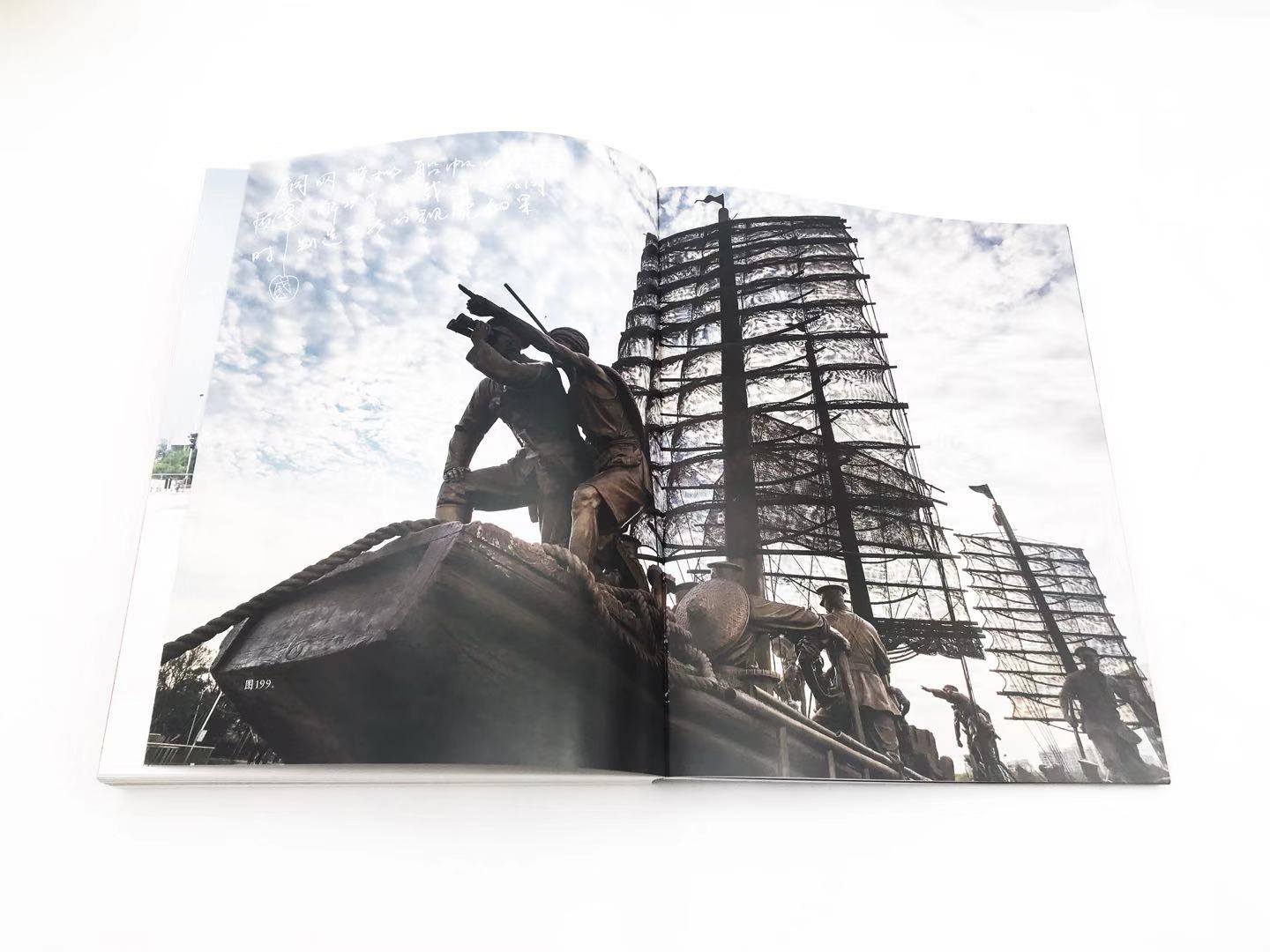 翻開此書,捧讀一張張生動的照片,讓人仿佛身臨其境,就像站在雕塑家旁邊觀察欣賞他們設計制作,一組大型雕塑由泥雕變成銅雕的繁雜步驟,仿佛就在眼前徐徐展開:從練泥機里剛取出的稀泥特寫;創作者面對雕塑小稿細細端詳、揣摩及修改;孫偉教授站在戰士雕像前模仿并體會戰士牽馬的動作;進入細節刻畫階段,除少部分需要仔細修改,泥雕大部分都用塑料布包裹起來的場景;用坩堝熔銅的“火熱”現場;對雕塑原稿進行翻制,翻制完成后工人們與雕塑外模合影;為提高翻制的精細度,在頭、手等局部再單獨進行硅膠翻制;用玻璃鋼模型模擬組裝起來的雕塑效果……