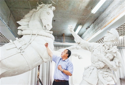 孫偉教授說,以他創作許多大型雕塑的經歷來看,之前從沒有哪一位攝影家全身心投入并全景式記錄他們的創作。雕塑在中國作為一門學科還不過百年,因此,許多重要雕塑創作留下的具有文獻意義的資料還很少。用孫教授的話來說,就是“可以參考利用的文獻與汗牛充棟的畫論相比,是九牛一毛”。而可供對照的是,意大利米蘭大教堂旁邊就建有米蘭大教堂博物館,其中關于米蘭大教堂建設過程中雕塑的文獻,就整理并陳列得非常完備。因此,重大雕塑的創作,與之相伴的文獻性資料的整理和收集是十分必要的。攝影家的工作,“對我們雕塑家來說更是一種文獻性的貢獻”。