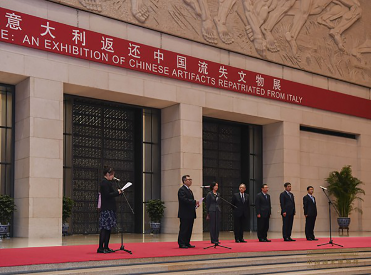 2019年4月24日,由中華人民共和國文化和旅游部、國家文物局主辦,中國國家博物館承辦的“歸來——意大利返還中國流失文物展”在中國國家博物館啟幕。文化和旅游部黨組書記、部長雒樹剛和意大利駐華大使謝國誼致辭,雒樹剛部長宣布展覽開幕,中國國家博物館館長王春法主持開幕儀式。